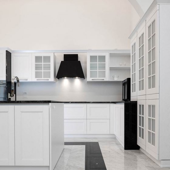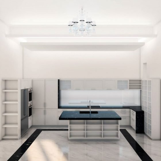 Un lavoro di ricerca e selezione di numerosi marmi utilizzati per pavimenti e rivestimenti della nuova cucina e dei nuovi bagni.