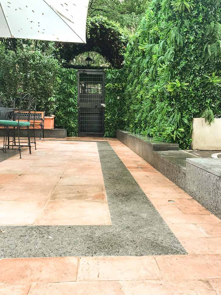 Particolare l’intervento nel giardino di pertinenza dov’è stata realizzata la pavimentazione in cotto fatto a mano totalmente su misura per colore e dimensioni come da richiesta dell’architetto e della proprietà.