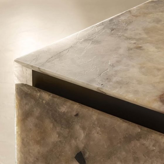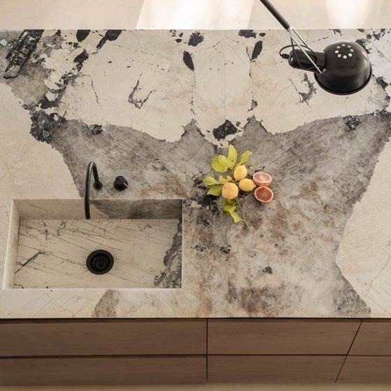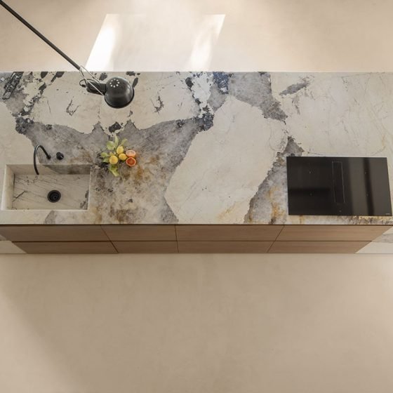 Una pietra dall’effetto spettacolare per via dei giochi di luce che si creano tra la parte marmorea naturale e la lucidità della parte quarzitica, e al tempo stesso, altamente funzionale in zone ad alto traffico come il top della cucina grazie all’estrema resistenza a graffi, scheggiature, urti nonché agli acidi.