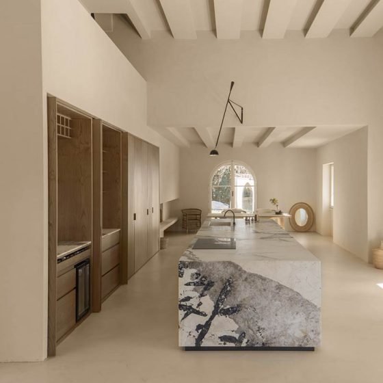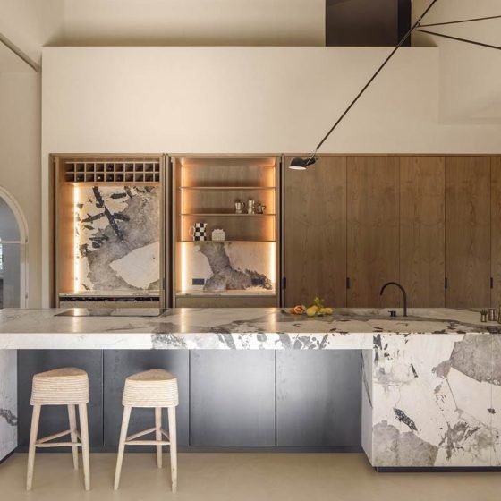 Nello specifico, una ricerca e selezione di numerosi materiali, per una fornitura custom-made che ha ridefinito l’ambiente cucina e il living, cuore della casa, creando un dialogo armonico tra home decor africano, materiali naturali, superficie continua e cotto fatto a mano lavorato in piccoli listelli di colori differenti.