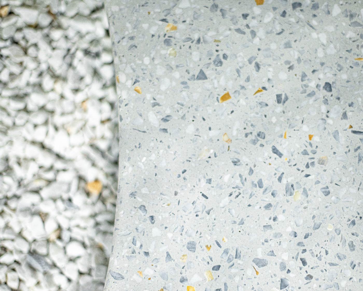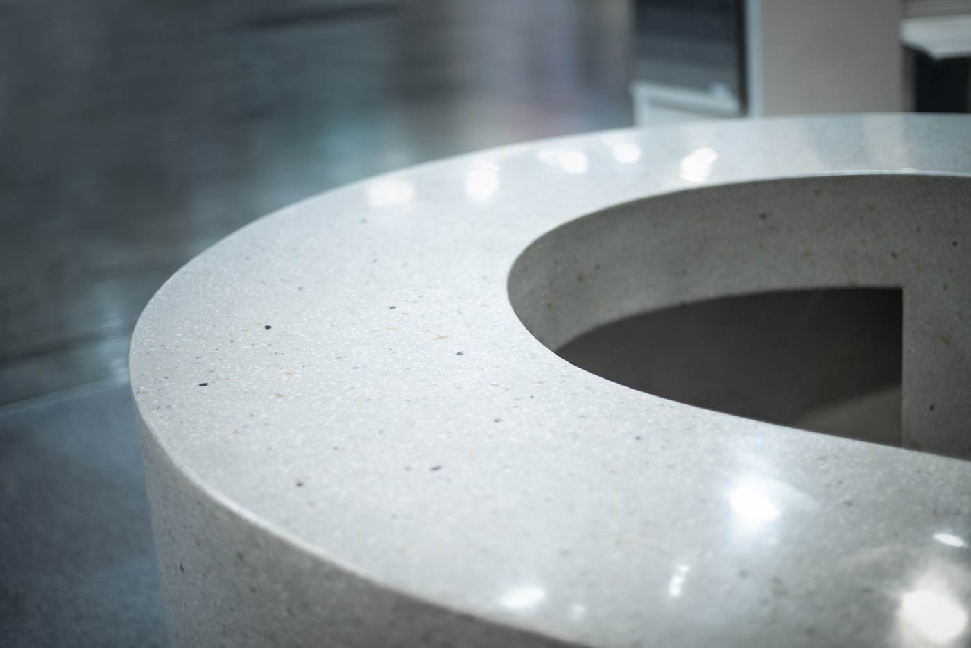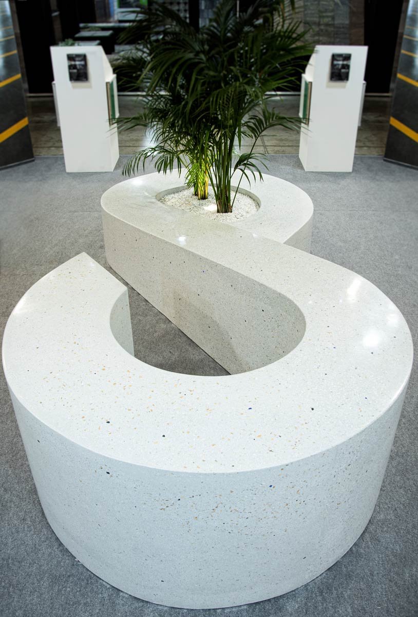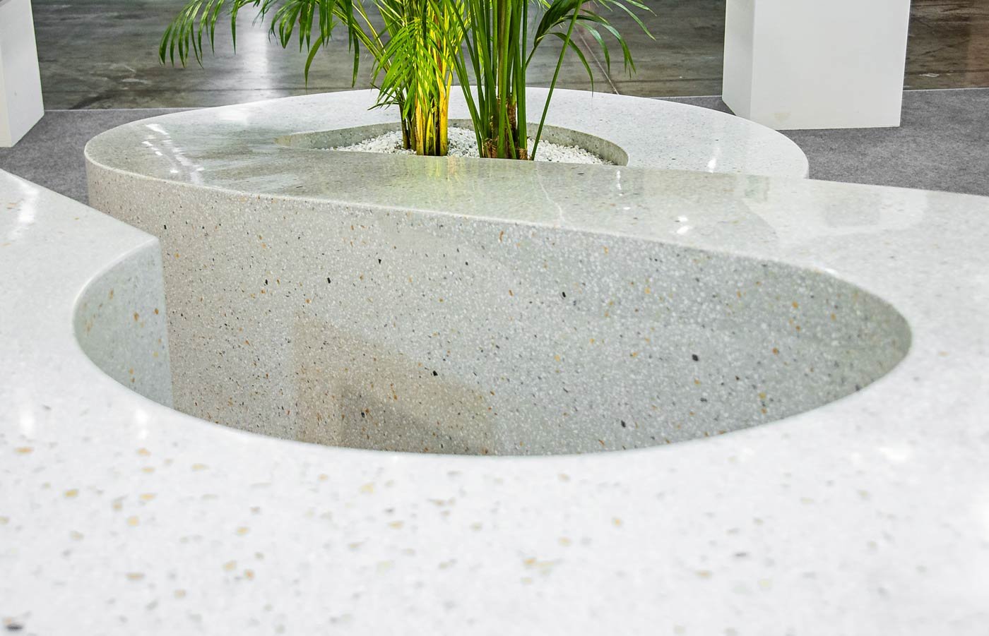 Una parola, infinito, è stata d’ispirazione nella realizzazione di un oggetto di design unico dal nome “Metamorfosi” a indicare il carattere sperimentale del progetto, che ben oltre la forma e la specifica funzione, ha lavorato su una materia: la graniglia di marmo con inserti naturali che offre infinite possibilità di finitura e forma.