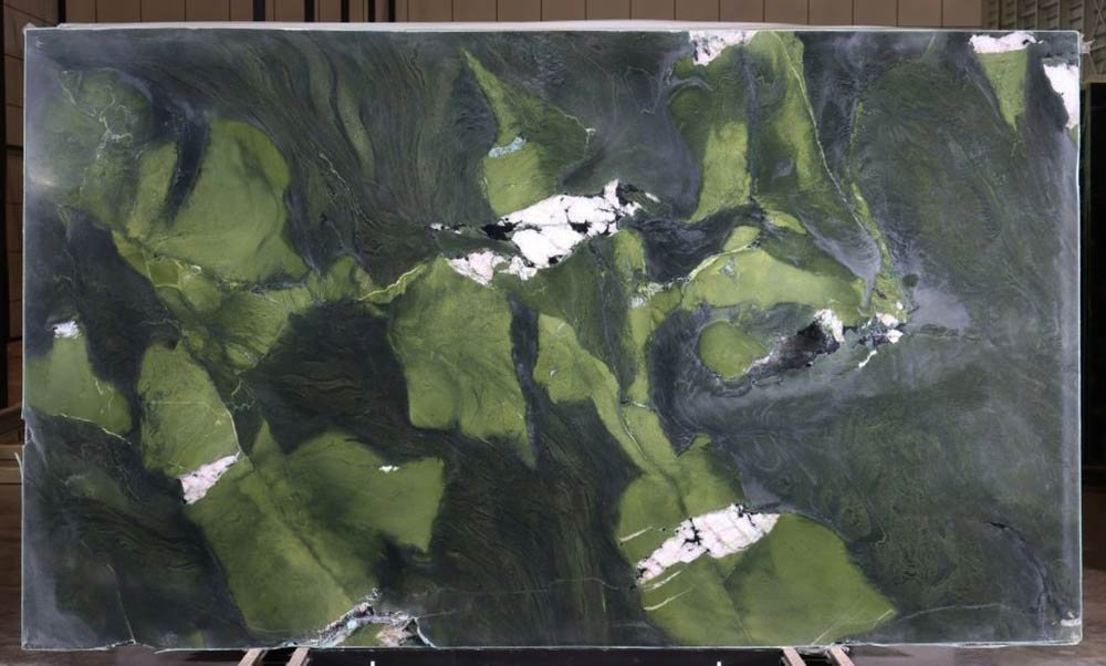Questo nuovo ed esclusivo materiale proveniente dal Brasile è definito da ampie macchie di verde di tonalità diverse intervallate da sottili venature di quarzo bianco. Quarzite dal fascino esotico, evoca una natura misteriosa e incontaminata. Le inaspettate sinuosità, arricchite da un effetto materico, rendono ogni singola lastra come un’opera d’arte creata dalla natura. Grazie alla sua incredibile durata e resistenza al calore, la quarzite è un materiale versatile che funziona in aree ad alto traffico come i piani di lavoro della cucina, dove definisce l’ambiente con semplice eleganza, segnando quasi un orizzonte grazie al pattern naturale della pietra. Si può graffiare o incidere? La quarzite è due volte più dura del vetro, così da essere una scelta eccellente per le superfici soggette all’usura quotidiana.
