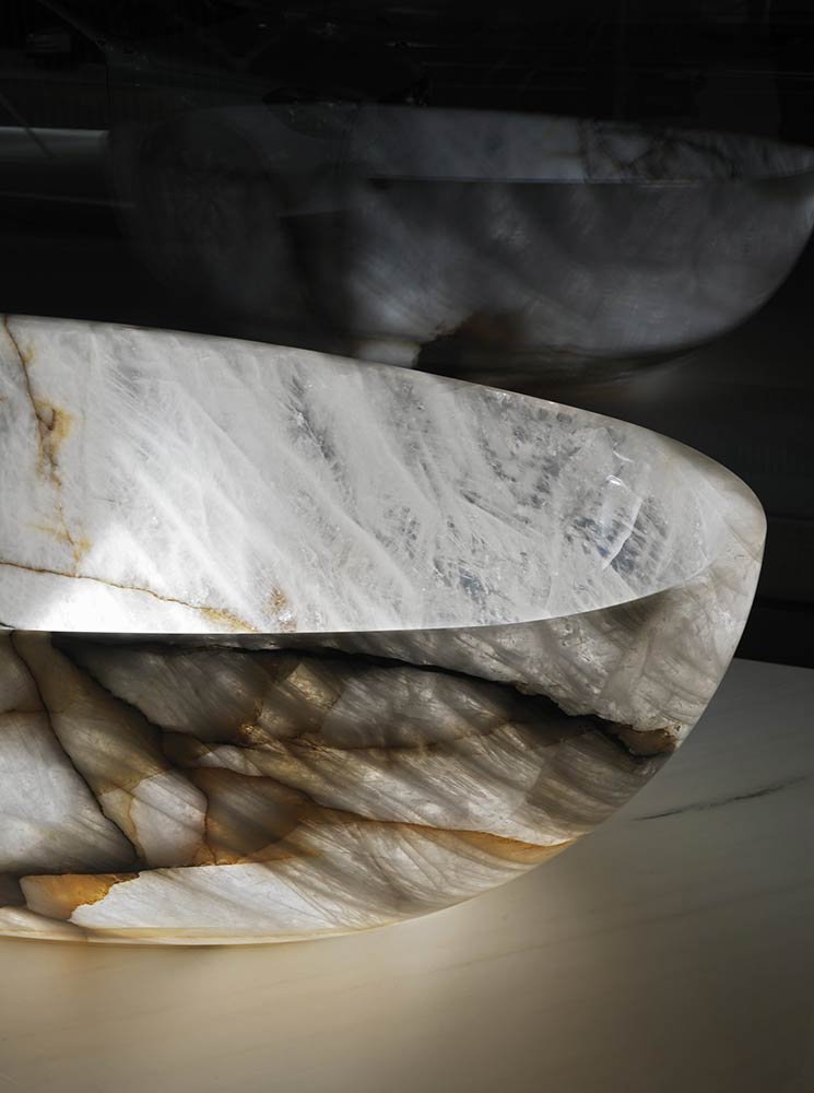 Il cristallo è un quarzo naturale, dal carattere forte e delicato insieme, che grazie alla sua composizione unica si impone per eleganza e fascino nei progetti di interior design.