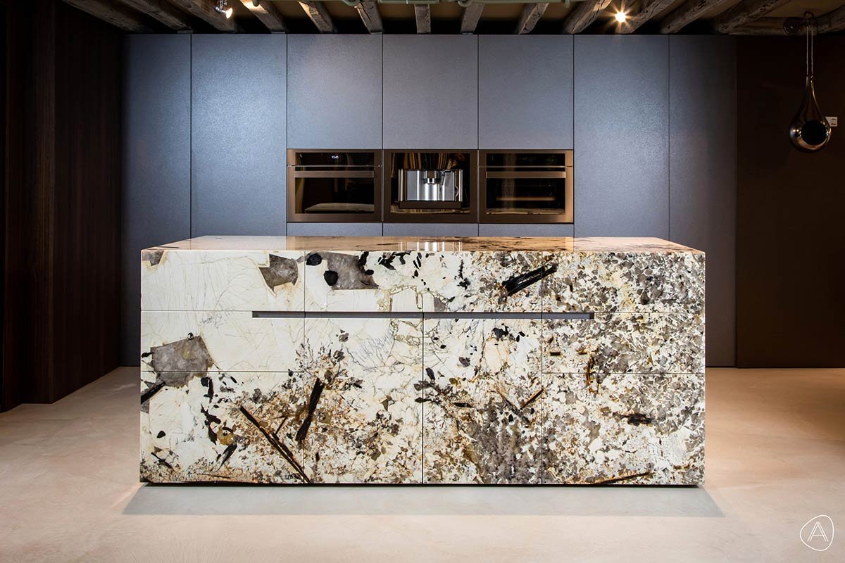 Oltre che di eccezionale bellezza, il Patagonia assicura anche una superficie resistente su cui lavorare alla preparazione dei cibi. Alla ricercata raffinatezza della texture multicolore si unisce infatti la praticità e la durevolezza tipiche della pietra naturale.