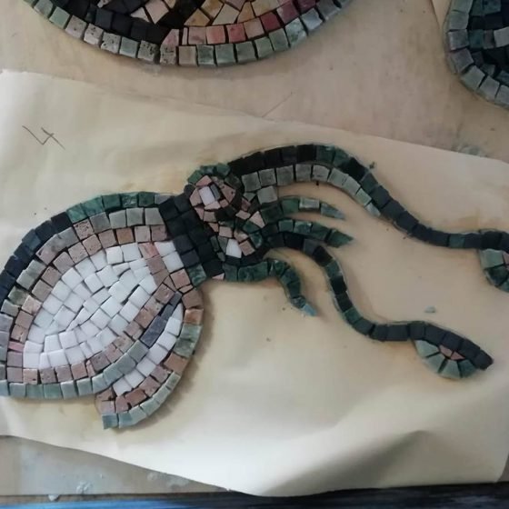 L’arte musiva è un’arte millenaria per la quale piccole tessere musive, quali pietre naturali, di terracotta o di paste vitree, bianche, nere o colorate, vengono applicate su un fondo preparato con un apposito intonaco, riproducendo un determinato disegno. Una tecnica nata in Mesopotamia e poi esportata nel mondo dell’antichità per decorare pavimenti e pareti o singoli elementi architettonici e scultorei; fino a che in epoca cristiana il mosaico divenne l’elemento fondamentale per decorare le chiese riproducendo scene dell’arte sacra.