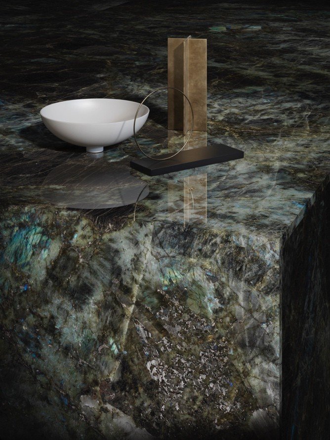 Credere nelle favole e lasciarsi conquistare da narrazioni fantastiche per cogliere appieno il fascino intriso di mistero della labradorite, granito tra i più spettacolari esistenti in natura molto apprezzato nei progetti di interior design.